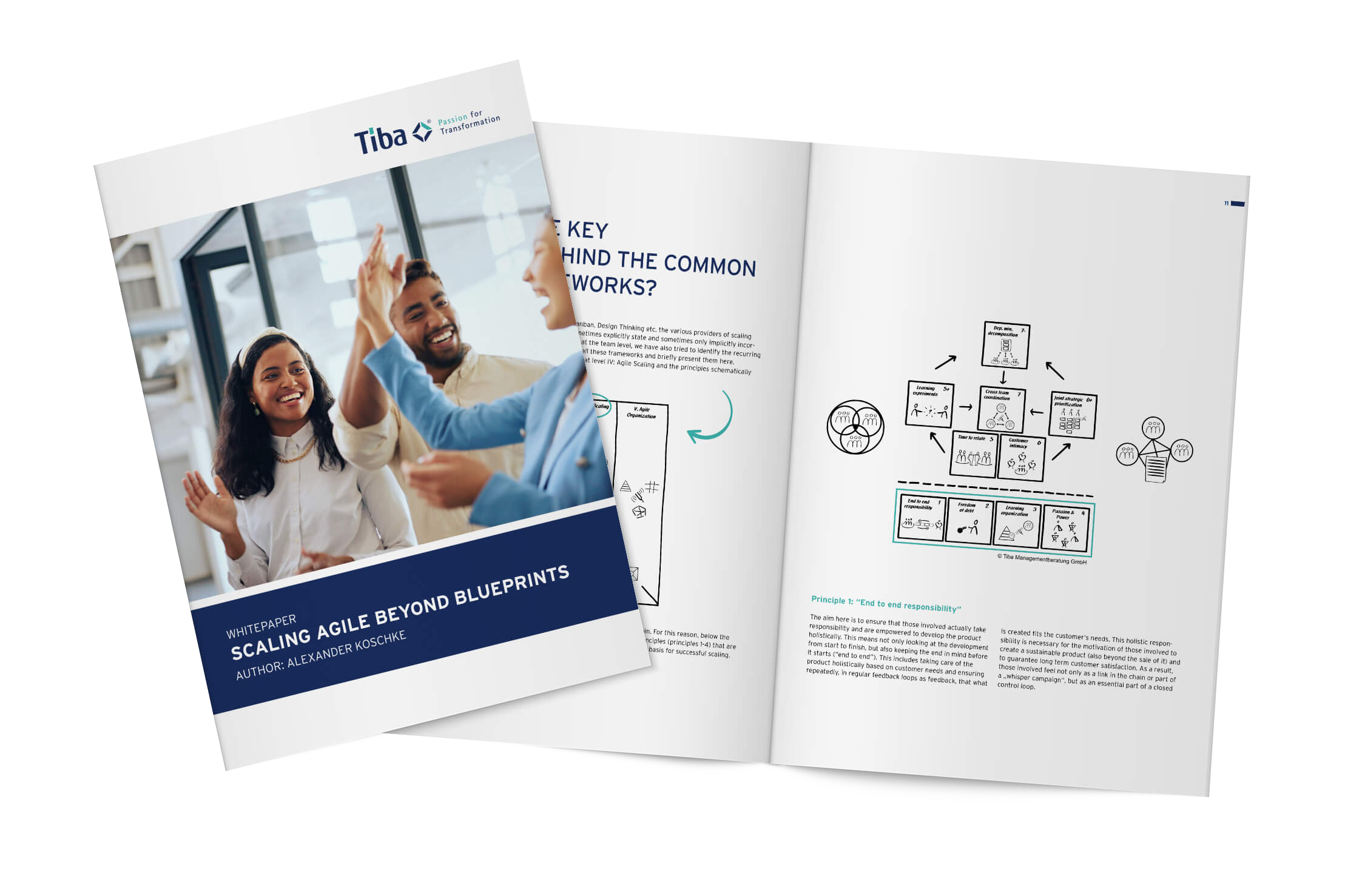 In this brochure, we look at the important topic of agile scaling. Agile working at team level is already routine in some companies, but when it comes to scaling agility across the entire company, many reach their limits faster than they would like. We take a look behind the well-known frameworks such as Scrum, SAFe® and Kanban, show what makes agile scaling so difficult and give tips on how agile scaling can be successfully driven forward.