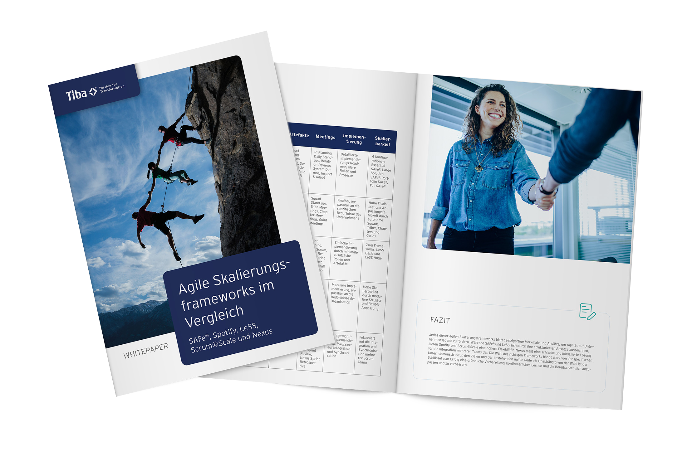 Die Geschäftswelt wird immer dynamischer und komplexer. Unternehmen sind gezwungen, schneller zu entscheiden, effizient zu liefern und sich flexibel an neue Gegebenheiten anzupassen – kurz: agil zu sein. Dabei reicht es nicht mehr, Agilität auf Teamebene zu etablieren, sie muss auf das gesamte Unternehmen ausgeweitet werden. Hier kommt die agile Skalierung ins Spiel. Doch nicht jedes Framework zur agilen Skalierung passt zu jedem Unternehmen. In unserer Broschüre stellen wir Ihnen die wichtigsten agilen Skalierungsframeworks vor. Zusätzlich veranschaulichen wir anhand eines direkten Vergleichs aller Frameworks, für welche Unternehmen sich welches Modell am besten eignet.