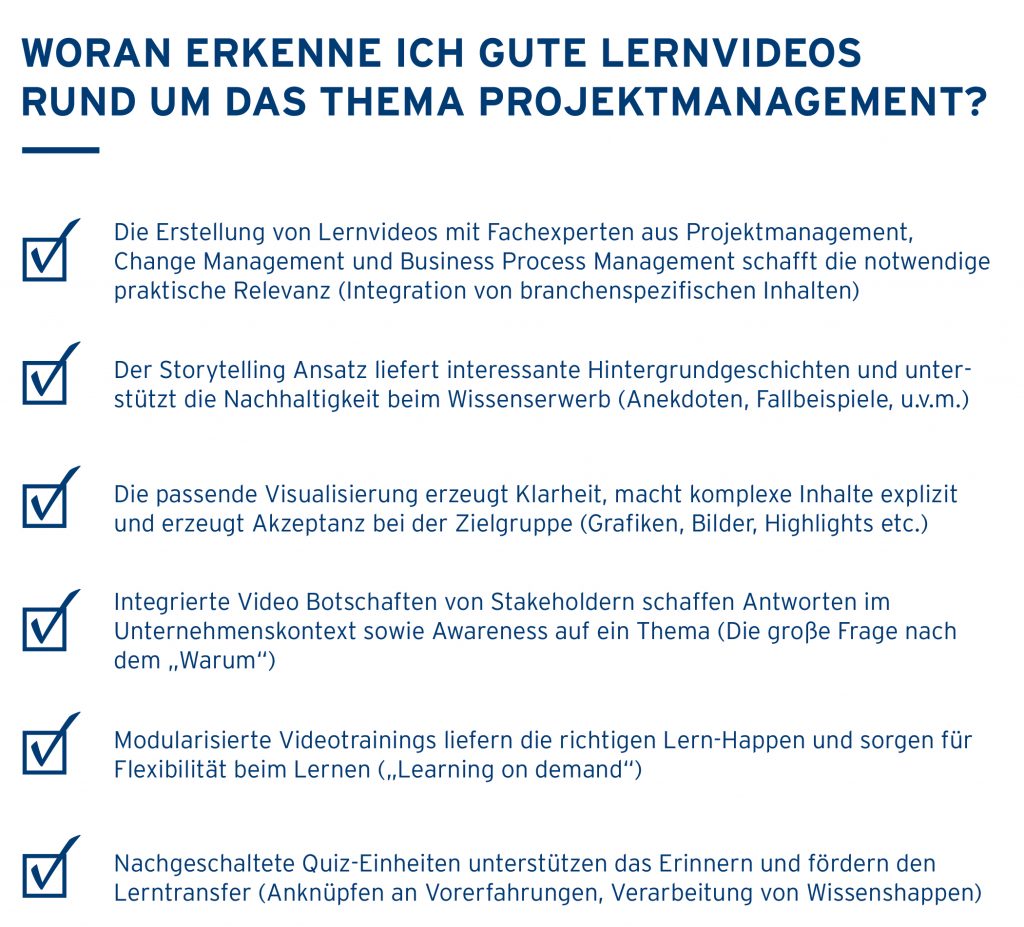 Abb. 1: Qualitätsmerkmale von Lernvideos in der Projektmanagement Qualifizierung (Eigene Darstellung)