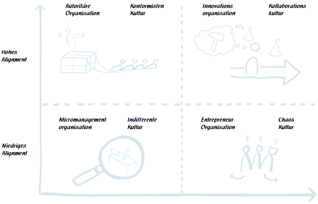 Abb. 1: Alignment vs. Autonomy nach Spotify-Modell (eigene Darstellung nach Kniberg 2014)