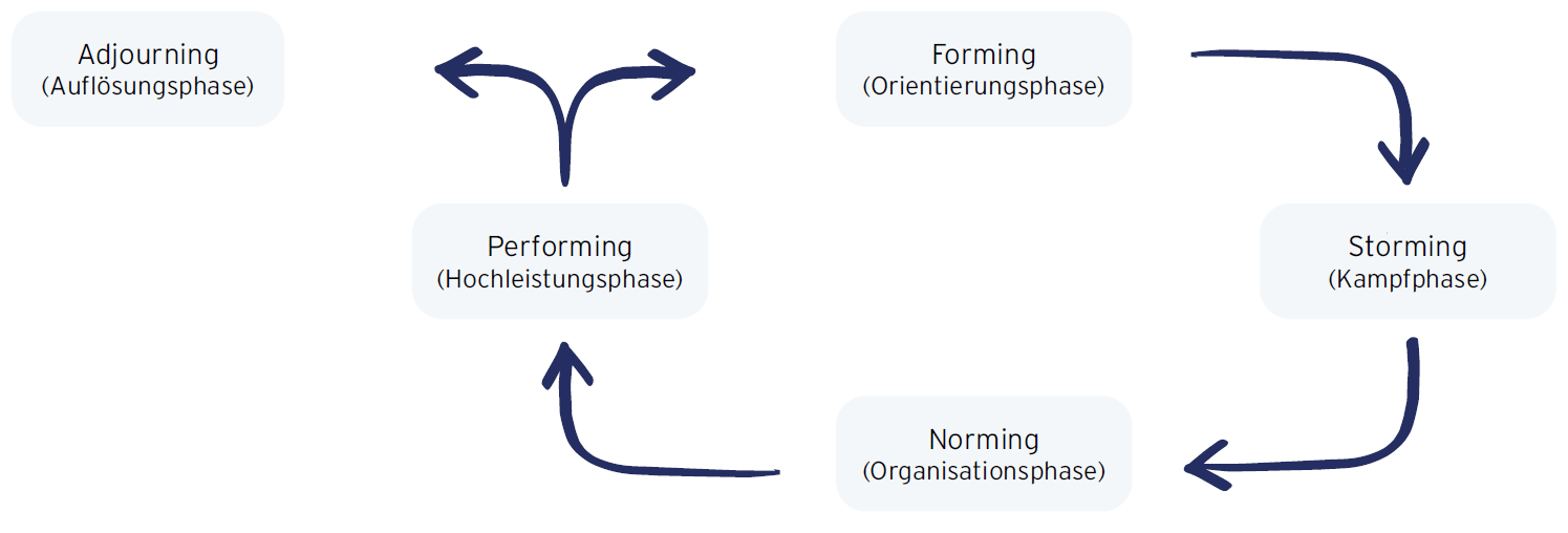 Abb. 1: Die Phasen der Teamentwicklung (Eigene Darstellung nach Tuckman 1965)
