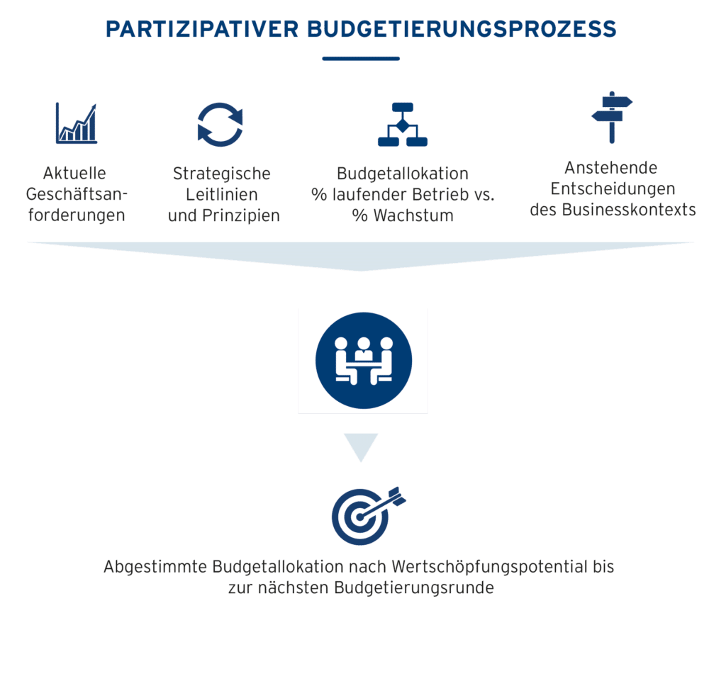 Als Abstimmungsinstrument wird der partizipative Budgetierungsprozess genutzt, d.h. mit gleichem Stimmrecht müssen sich die Abteilungsleiter über die Mittelverwendung und die Priorisierung der Mittelverwendung mit einer einfachen Mehrheit einig sein. Es muss also für Mittelverwendungen innerhalb der Entscheidungsrunde geworben werden. Damit wird eine hohe Ausrichtung der gesamten Business Unit an der zu erreichenden Wertschöpfung sichergestellt.