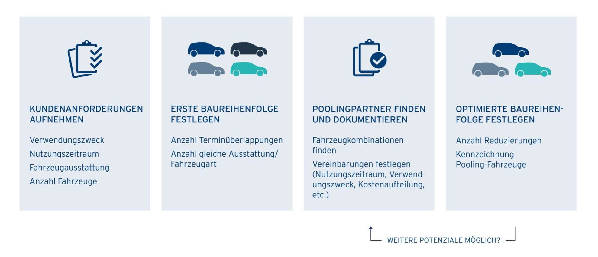 Flottenbetreiber wissen, wie sie ihren Fuhrpark optimieren. Die Idee eines Fahrzeugpools, bei dem nicht jeder Anspruchsberechtigte ein eigenes Fahrzeug besitzt, sondern aus einem gemeinsamen Pool das gerade freie und möglichst passende wählt, lässt sich auf die Nutzung von Vorserienfahrzeugen übertragen.